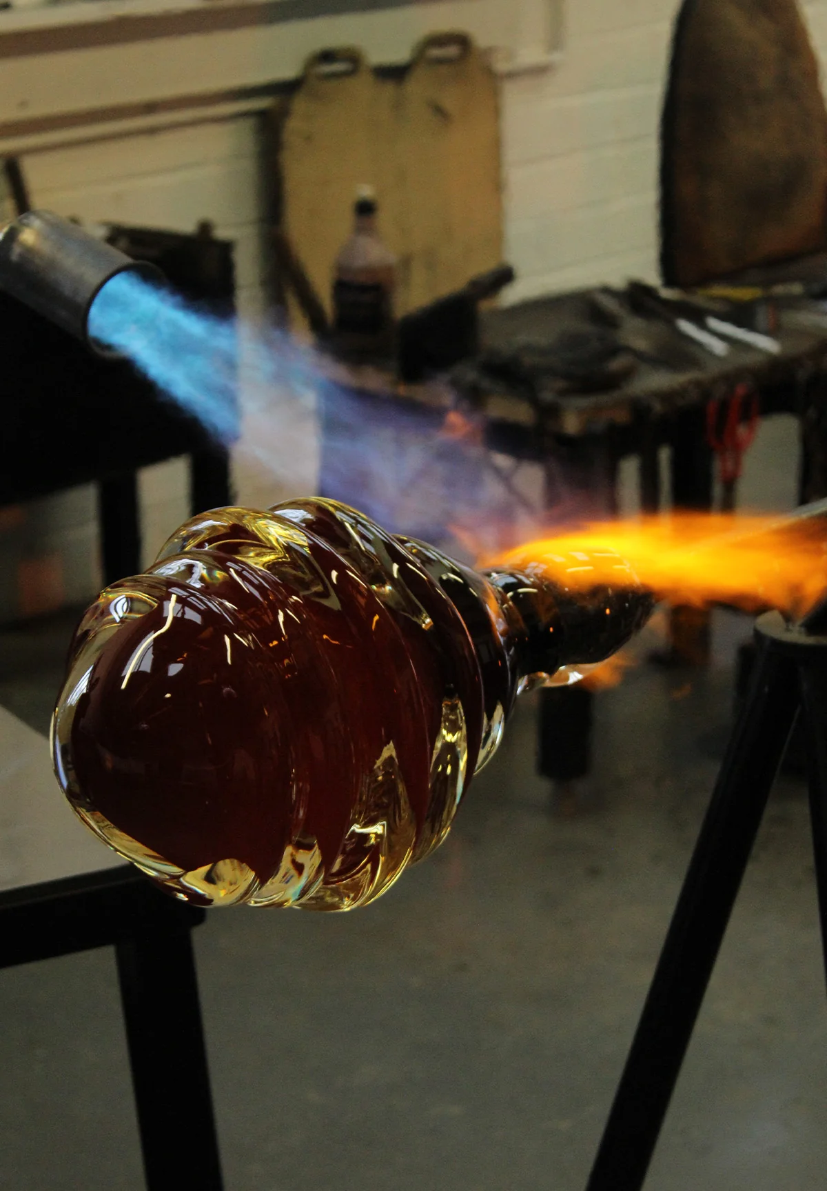 The Briony lamp is made from handblown glass. The centre, coloured in either Charcoal, Cedar, Moth or Clear is then encapsulated in thickly layered rich folds of clear glass, to create an even greater sense of depth.