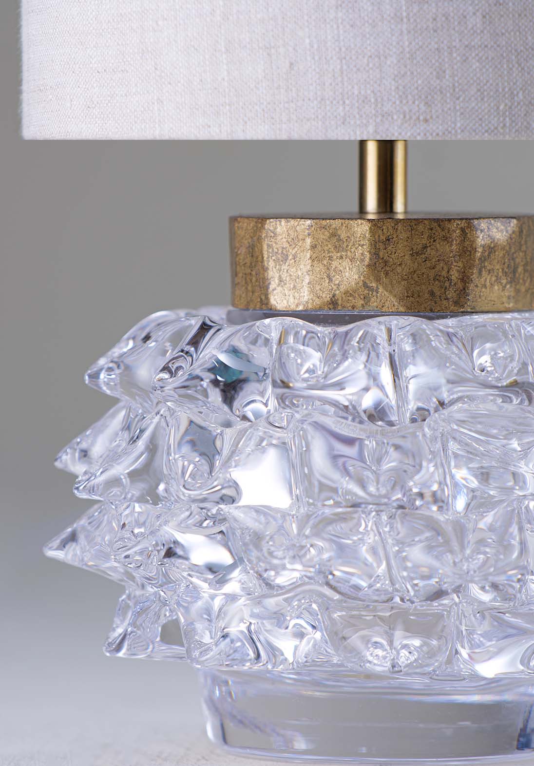 With its glass peaks and decorative collar, the Hedgehog Lamp is a nod to vintage design. Its spiked texture captures and reflects the light from above.