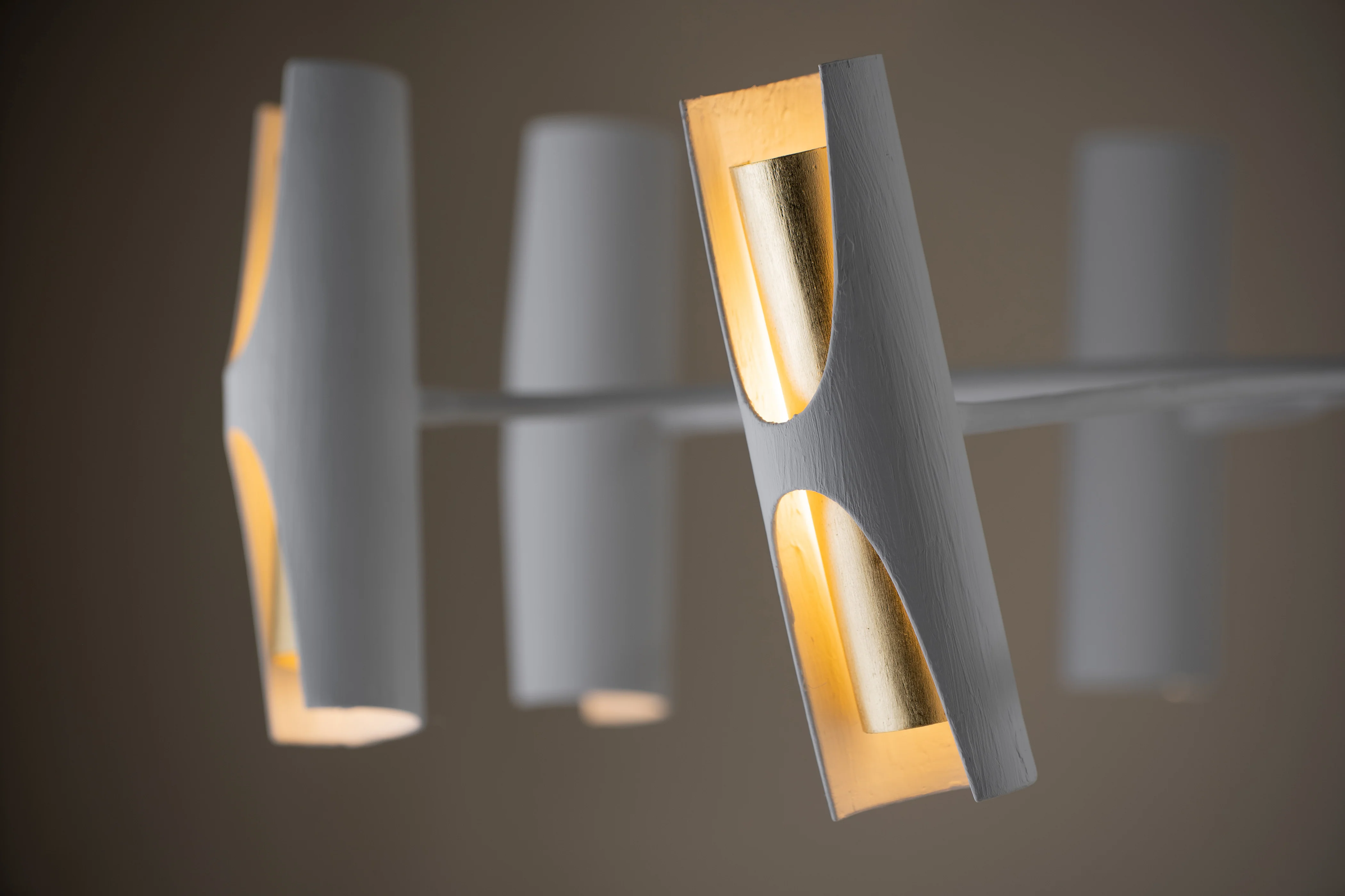 Based on iconic 20th century sculptural forms, the Thera Ceiling Light was designed by Gareth Devonald Smith and creates a soft, angled light.